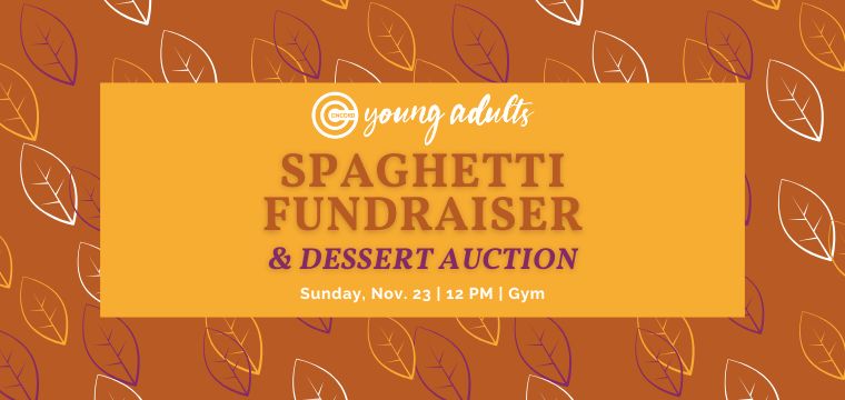 Everyone is invited to join us for the Young Adult Spaghetti Fundraiser and Dessert Auction starting at noon in the gym. If you are interested in donating desserts for the auction, please contact Jake Carlisle.