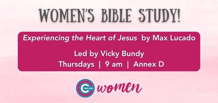 Ladies, join us for a women's Bible study - Experiencing the Heart of Jesus by Max Lucado. The study will start on Thursday, January 15 at 9 am in Annex D and is limited to 15 women. The cost is $10 to help offset the cost of the book.